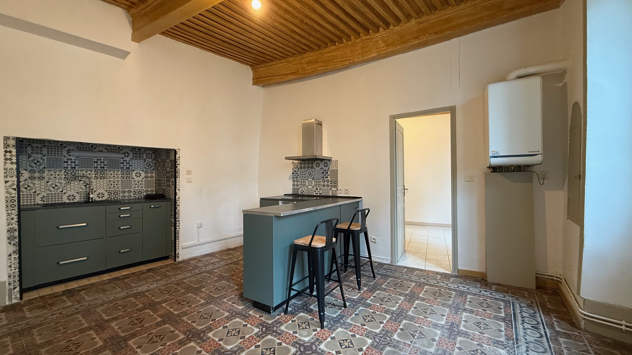 Aubenas (07200)Centre AUBENAS-Apppartement T2 au premier étage d'un immeuble composé de 3 Appartements comprenant un espace séjour avec une cuisine semi-équipée, 1 chambre et une salle d'eau avec WC.