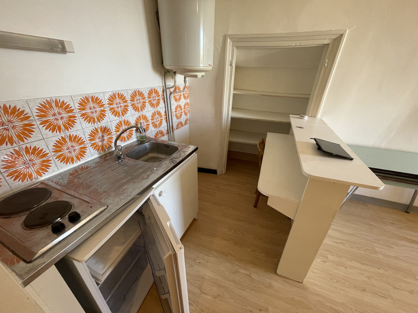 Aubenas (07200)CENTRE AUBENAS, Studio situé au 1er étage sans ascenseur comprenant pièce principale avec coin cuisine semi-équipé, salle d'eau avec WC.